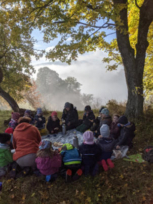 Zu allen vier Jahreszeiten verlegt die Regenbogengruppe ihren Gruppenraum in die Natur. und verbringt eine ganze Woche
