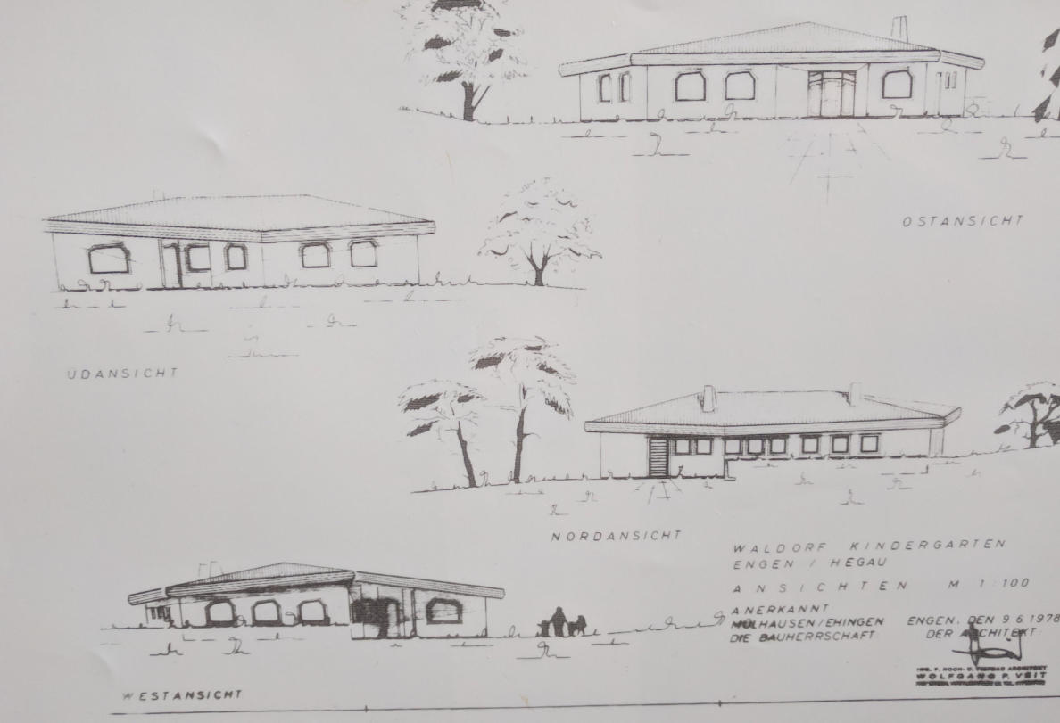 Der Waldorfkindergarten Engen blickt auf eine lebendige und engagierte Entstehungsgeschichte zurück.Alles begann 1977, als sich einige Eltern aus Engen und dem Hegau zusammenschlossen, um eine Einrichtung nach den Prinzipien der Waldorfpädagogik ins Leben zu rufen. Ihre Motivation war der Wunsch nach einer kindgerechten, naturnahen Umgebung, in der Kinder durch freies Spiel, Nachahmung und kreative Tätigkeiten in ihrer Entwicklung begleitet werden - ganz ohne frühzeitige intellektuelle Überforderung. 1978 konnte die erste Kindergartengruppe im Kachelofenzimmer des Freien Jugendseminars (heute Impulshaus) starten - mit viel Eigeninitiative, Improvisation und einem starken Gemeinschaftsgefühl. Die Eltern gestalteten Spielmaterialien selbst, organisierten Vorträge und bauten ein starkes Fundament an pädagogischem Verständnis und Zusammenarbeit. Bald wuchs der Wunsch nach einem eigenen Haus, das diesen Idealen dauerhaft Raum geben konnte. Mit Unterstützung der Stadt Engen wurde ein Grundstück zur Verfügung gestellt, auf dem in zwei Jahren Bauzeit ein Kindergarten in echter Gemeinschaftsarbeit der Eltern entstand. 1982 wurde das neue Haus in der Goethestraße feierlich eröffnet. Der Straßenname selbst - wurde auf Antrag von „Sportplatzstraße“ in „Goethestraße“ umbenannt, als Ausdruck der tiefen Verbindung zur Waldorfpädagogik und ihrer geistigen Wurzeln, die auch Goethe mit seinem umfassenden Menschenbild mitgeprägt hat. Bis heute ist der Waldorfkindergarten Engen ein besonderer Ort: getragen von Initiative, gestaltet mit Herz, gewachsen durch Vertrauen. In zwei Gruppen erleben Kinder hier Geborgenheit, rhythmische Tages- und Jahresabläufe, kreatives Spiel mit natürlichen Materialien und eine enge Verbindung zur Natur und zu ihren Mitmenschen.