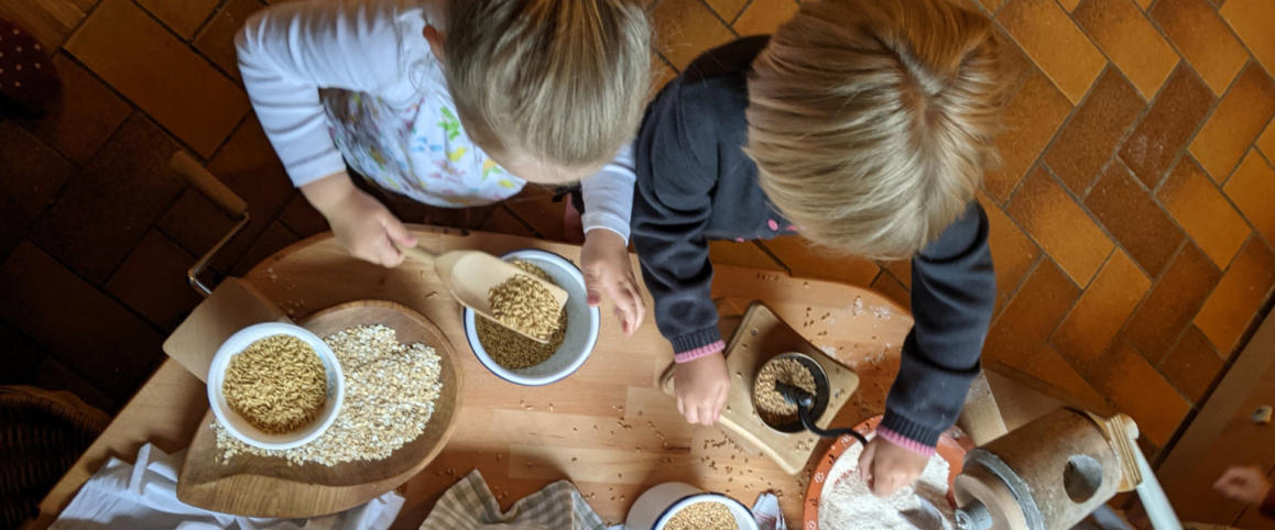 Die Grundsätze der WaldorfpädagogikDie Fähigkeit zu staunen, sich selbst und die Welt als Ganzes zu erleben, gehört zu den besonderen Eigenschaften kleiner Kinder. Diese zu stärken und die Kinder in ihrer ureigenen Entwicklung aufmerksam und fürsorglich zu begleiten ist das Ziel des Waldorfkindergartens. Kinder kommen als Individualitäten zur Welt, die sich mit ihren Begabungen, Neigungen, Interessen und auch Handicaps entwickeln und ihren eigenen Weg gehen wollen. Um diesen Prozess so gut wie möglich zu gestalten, brauchen sie kompetente erwachsene Vorbilder, liebevolle und sichere Beziehungsverhältnisse und ihre eigene Entwicklungszeit. Kinder gehören nicht in das Zeitraster der Erwachsenenwelt und auch nicht in deren politische oder wirtschaftliche Zweckvorstellungen. Kinder sind lernfähige, lernfreudige und lernbereite Wesen. Ihre Entwicklungsfenster sind gerade in den ersten Kindheitsjahren besonders weit geöffnet. Daraus entsteht die Verantwortung, ihre Lebenswelt so zu gestalten, dass sie sich gesund entwickeln und · die Welt in ihren Zusammenhängen erkennen lernen · Vertrauen in die eigenen wachsenden Kräfte und Fähigkeiten bekommen · die Sinnhaftigkeit des eigenen Handelns, Fühlen und Denkens entdecken. Die Zeit vor der Schule dient dazu, frei von schulischem Lernen so genannte Basiskompetenzen zu entwickeln, auf denen später die schulische Erziehung und Bildung aufbauen kann. Gerade diese Basiskompetenzen versetzen die späteren Jugendlichen und Erwachsenen in die Lage, die Leistungsanforderungen des Lebens zu meistern, schaffen erst die Fundamente für anschließende Differenzierung.